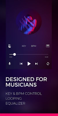 Plenty of features to help you play music and grow as a musician. From isolating and extracting vocals and instruments from any song, shifting the key and tempo, to accessing a large catalog of high-quality original backing tracks.