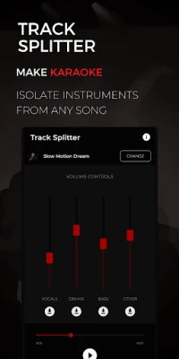 - Track Splitter (stem separation): remove or extract vocals to create a karaoke track of any of your songs. Control the volume of drums, bass and piano using the Track Splitter stems player for FREE.