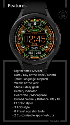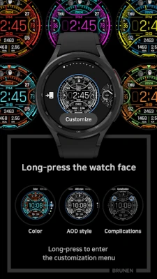 This watch face was designed with Watch Face Studio and the Galaxy Watch 4/5/6/7 was used as a test device.