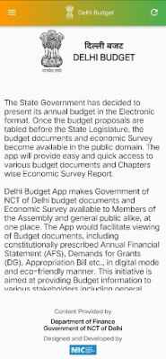 Delhi Budget App makes Government of NCT of Delhi budget documents and Economic Survey available to Members of the Assembly and general public alike, at one place. The App would facilitate viewing of Budget documents, including constitutionally prescribed Annual Financial Statement (AFS), Demands for Grants (DG), Appropriation Bill etc., in digital mode and eco-friendly manner. This initiative is aimed at providing Budget information to various stakeholders including general public at the click of a button.