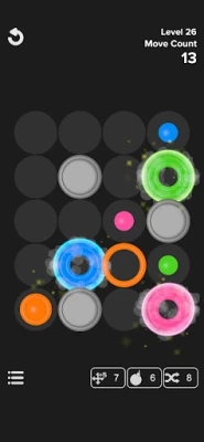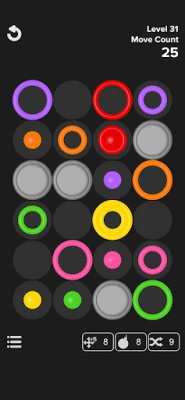 Simply swipe to move rings on the board. Arrange them to fit one within the other. Stack three rings of the same color. Match them all and clear the board. Watch your move count.