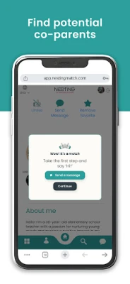 Through the Nesting app, you can find like-minded individuals who share the same goal of co-parenting by choice. Our search engine and detailed profiles are designed especially to provide insight into the most relevant criteria for choosing a parenting partner. We skip the quick-swipe approach and that's why you can’t “like” or message on our app based on a quick profile view. Instead, we invite you to explore thoughtfully, read up, and give each candidate a real chance.