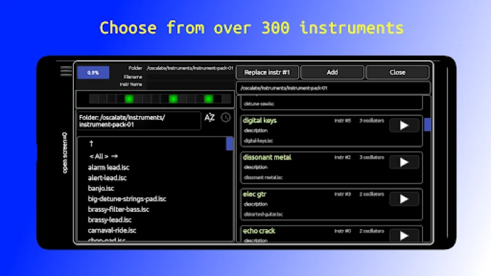 • Real-Time Sound Generation: The app supports real-time adjustments to any oscillator or instrument parameter while you play, making it a great tool for live performances and dynamic sound creation.