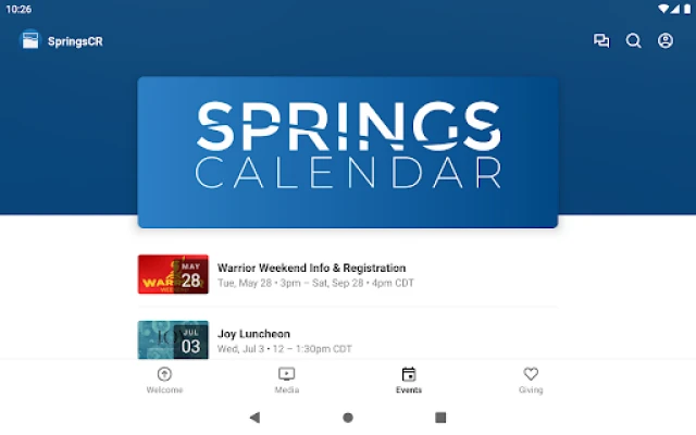 The Springs CR app has lots of live and archived media, messages and worship services. You can also easily find opportunities to connect with the Springs Community, Interact with others during our streaming worship services and so much more!