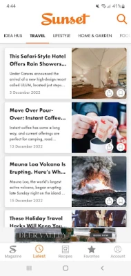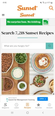 • RECIPE SEARCH: A new app section takes you to Sunset's growing database of recipes, where you can easily search through our thousands of entries, from dinners to desserts and so much more.