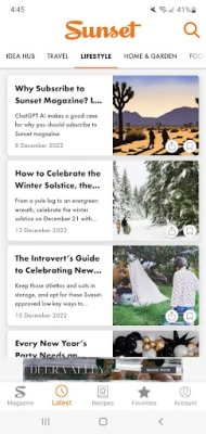 • OFFLINE READING: Download and flip through entire Sunset magazines to your device to read them whenever and wherever you want, even without an internet connection.