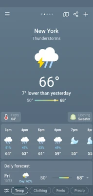 Weather App's robust weather reporting encompasses hourly and daily forecasts, keeping you informed about the weather today, tomorrow, and up to 15 days ahead. Our comprehensive weather channel transcends mere data delivery; it provides a tailored weather experience. Stay updated with San Francisco weather, New York weather, London weather, and other major cities worldwide, all through our app's global yet locally nuanced coverage, backed by the reliability of the National Weather Service and NOAA.